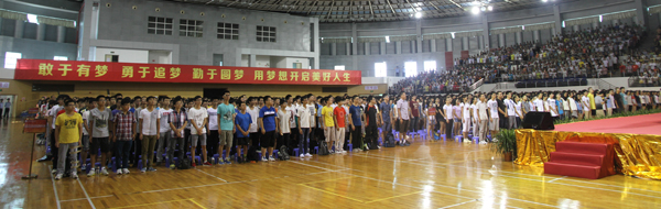 9月16日,我校在大学城校区体育馆举行新生开学典礼,校长王省良与全体2013级新生4千多人(含本专科生、研究生、境外生和留学生)畅谈青春梦想。