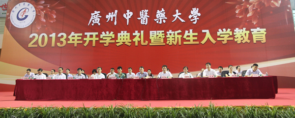 校长王省良在讲话中告诉全体新生,大学是多元文化交融的知识殿堂,是各类思维碰撞的竞技赛场,也是一个自由得让人容易迷失的地方。他叮嘱新生要珍惜时光,坚持梦想,成就辉煌。同时强调,坚持梦想,需要良好的境遇,还需要自身的不懈努力。王省良说,从今天开始,你们就是广中医人,广中医将与你们伴随终生,广中医一定会竭尽所能,为你们的梦想保驾护航。他借用"知识是金钱"的隐喻,将广中医类比为国有大银行,他说,这里有取不完的"钱",欢迎大家都来取"钱",成为知识富翁。这个妙喻赢得了台下会心的微笑和热烈的掌声。
