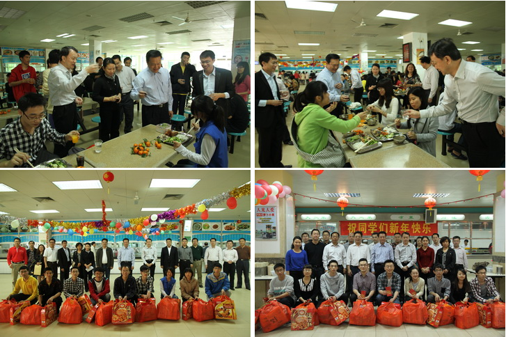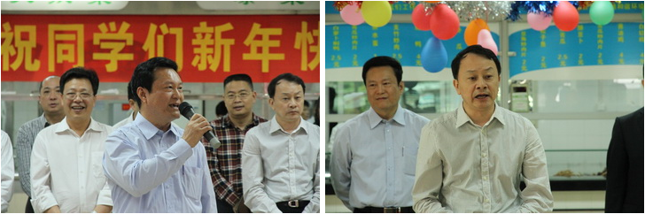 黄斌书记、王省良校长分别发表了热情洋溢的新春致辞,代表学校向留校过年的同学们致以诚挚的新年祝福,祝愿同学们新年快乐、学业进步、身体健康。同时强调假期要注意安全,过一个祥和平安的春节。校领导给留校生活困难学生代表派送了节日慰问金,给留校的学生派送了节日慰问品。丰富的过年菜,温暖的祝福心,激励人心的话语让在座的学生倍感学校的关怀与温暖。