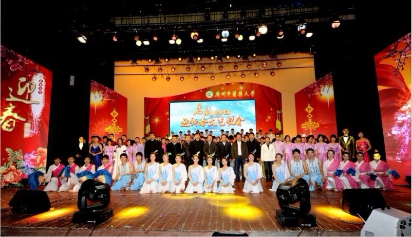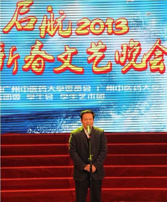 黄斌书记致新春贺辞,他向全校师生为我校2012年在各个领域取得的显著成绩所作出的努力表示衷心的感谢和致以新年的祝福,同时提出了2013年我校工作重点:要深入学习贯彻十八大精神,大力推进内涵式发展,全面提高教育质量。更加注重优化学科专业结构和创新人才培养模式工作,着力提高人才培养质量;更加注重协同创新,着力增强科技创新及科技成果转化能力;更加注重师资队伍建设,着力培养与引进高层次人才;更加注重改善民生,着力构建幸福校园;更加注重加强党建工作,着力提高党的建设科学化水平。黄斌书记鼓励全校师生在新的一年里大力弘扬"崇德远志、和衷有容、汲古求新、笃学精业"的广中医精神,上下一心、积极进取,为"推动科学发展,建设幸福校园"而共同奋斗。