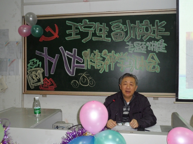 1月9日, 王宁生副校长为护理学院2011级本科党支部作了题为"十八大精神学习体会"讲座。本讲座也是支部特色活动《十八大面面观》的第二期。学生处处长林彬、护理学院党委副书记陈霖、学生科科长龚建文、护理学院2011级本科党支部全体党员和积极分子参加了本次讲座。