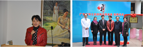 1月6日下午,我校2013年首场广东省博士后创新实践基地挂牌仪式在广州市南洋肿瘤医院有限公司隆重举行。学校郭姣副校长、研究生处、广州市白云区人社局以及南洋肿瘤医院等领导一同出席了挂牌仪式。