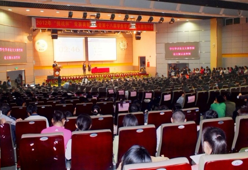 12月17日晚,由校团委、校学生会、校研究生会共同主办的2012年"挑战杯"竞赛表彰大会暨第十八届学生学术论文大赛答辩会在我校国际会议厅举行。大赛评委由各学院分管教学或科研的院领导担当。党委宣传部、学生处、团委负责人,各二级学院分管学生工作的领导与500多名热情高涨的同学共同出席了本次活动。
