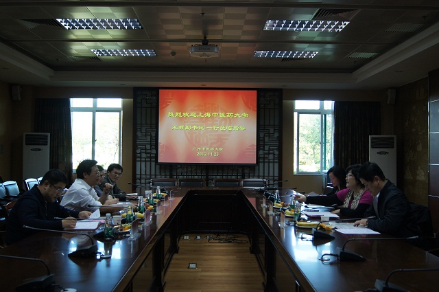 11月23日,上海中医药大学副书记王群、党委宣传部部长徐强、党委宣传部副部长朱慧华一行来校考察交流,就校园文化专题进行座谈,并颇有兴致地参观了同心园、岭南名医壁、广东中医药博物馆、药王山及榕园。校党委副书记陈英华、党办副主任李强、党委宣传部部长简福爱、团委书记温祥彬及学生处副处长叶清接待了来访客人。王群副书记对我校的校园文化建设及及团学工作开展情况表示极大赞赏。