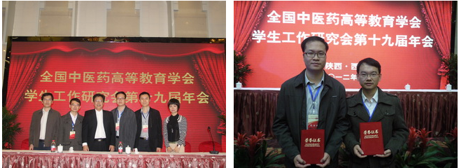 10月26-30日,全国中医药高等教育学会学生工作研究会第十九届年会在陕西西安隆重召开,来自全国22所中医药院校共200余人出席。全国中医药高等教育学会学生工作研究会副理事长、学校党委副书记陈英华带领学工部、校团委及辅导员代表参加了会议。我校经济与管理学院罗向晗老师和中药学院陈晔老师在会上被评为2011年-2012年度全国中医药院校优秀辅导员。