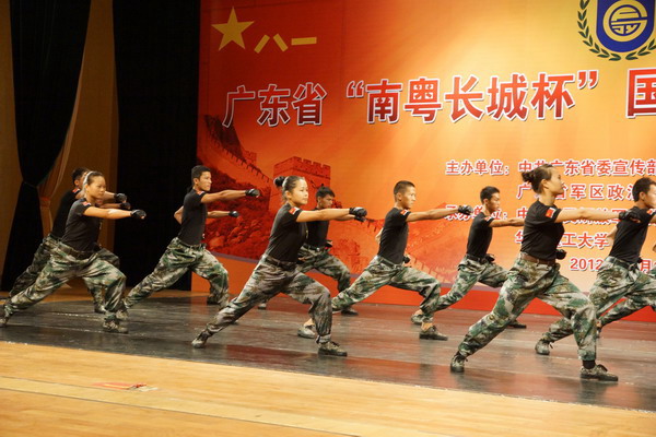 10月27日下午,由中共广东省委宣传部、省教育厅、广东省军区政治部和广东省国防教育办公室联合主办的"南粤长城杯"军事技能大赛大学生军体拳比赛在华南理工大学举行,来自全省16所高校的代表队参加比赛。我校代表队由体育健康学院2011级21位同学组成,他们努力拼搏,以总分172.6的优异成绩名列第五,荣获二等奖。