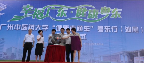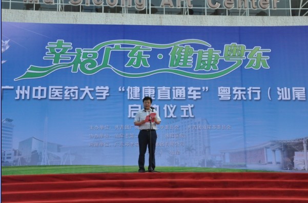 在启动仪式上,陈英华副书记指出,"健康直通车"粤东行活动得到学校党委的高度重视,并组建了层次高、业务精、能力强、学科广的精干的医疗服务专家队伍,深入到粤东五市开展切实有效的医疗志愿服务,旨在向百姓提供义诊咨询的同时,弘扬"崇德远志、和衷有容、汲古求新、笃学精业"的广中医精神。在汕尾市期间,我校杰出校友、汕尾市委书记郑雁雄宴请了服务队一行,席间讲话指出,未来医学的发展必定看中医药,广中医学子要学好中医药,服务祖国人民,并兴致勃勃地与志愿者共唱中国共产主义青年团团歌--《光荣啊,中国共青团》。汕尾市委副书记陈央出席了汕尾专场启动仪式并充分肯定了我校"健康直通车"粤东行活动。"健康直通车"汕尾站活动得到我校挂职干部、汕尾市政府副秘书长凌子平的大力支持。