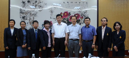 2012年7月9日上午,由副校长ChayapornSiriwattana女士率领的泰国皇太后大学代表团一行7人到我校参观访问,刘晟副校长与代表团举行了座谈。