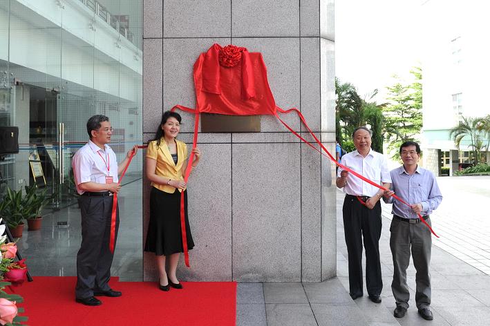 开幕式后,与会领导和代表来到图书馆参加广东省古籍重点保护单位揭牌仪式。去年10月19日,我校图书馆获批成为第一批广东省古籍重点保护单位;今年4月20日,广东省文化厅为第一批广东省古籍重点保护单位颁牌。在揭牌仪式上,刘洪辉馆长发表了讲话,高度评价了我校图书馆在古籍保护工作中取得的成绩,并对今后的古籍保护工作提出更高的期望。随后,郭姣副校长和各位嘉宾共同为广东省古籍重点保护单位揭牌。