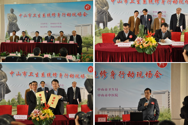 12月6日,王省良校长出席了中山市卫生系统修身行动现场会,并代表学校与中山市卫生局签订"医学人文"合作协议。中山市副市长唐颖,中山市政协副主席、卫生局局长麦建章,中山市卫生局党委书记吴炳坤,中山市文明办主任彭晓新等出席了会议。外事处处长王洪琦、基础医学院教授潘毅、学生处副处长潘伟增参加了会议。