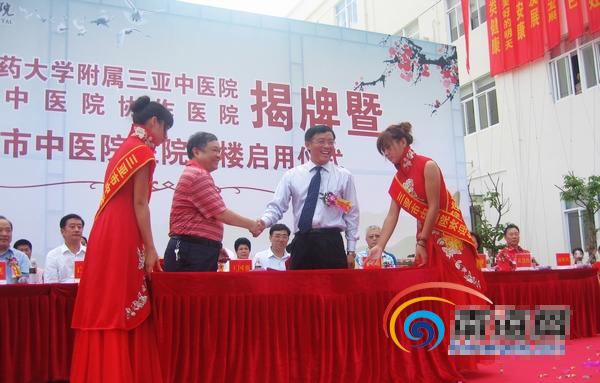 9月18日上午,三亚市中医院锣鼓喧天、鞭炮齐鸣,Beat365中文官方网站附属三亚中医院揭牌暨协议签字仪式在这里隆重举行。副校长许能贵率领校办林辉主任、教务处梁沛华处长等出席仪式并讲话。许能贵副校长与三亚市中医院刘德喜院长分别代表学校和医院签署了建立附属医院关系协议书,并与三亚市委副书记、市长王勇同志为附属医院揭牌。三亚市中医院正式成为我校第20个非直属附属医院。 同时,广东省中医院协作医院揭牌暨中医院住院大楼启用仪式举行。卫生部副部长、国家中医药管理局局长王国强,海南省卫生厅厅长白志勤,第二附属医院(广东省中医院)院长吕玉波等领导出席了揭牌庆典仪式。