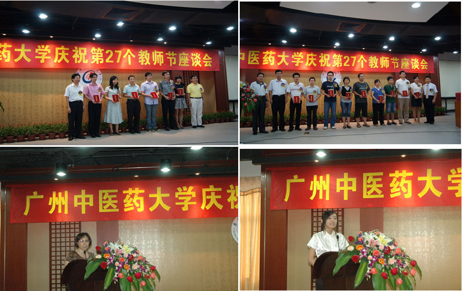 座谈会上对2011年度新南方教学奖励基金优秀教师和优秀党政管理工作者、校级教学名师和教学团队、本科教学工作优秀教研室等进行了表彰。获奖教师代表中药学院潘超美教授在发言中抒发了她从教十几年来的感受,强调作为教师,既要坚持"安教",做到爱岗敬业,也要学会"乐教",在平凡的工作中体会快乐,并以"位不在高,爱岗则名;资不在深,敬业就行;斯是教师,惟勤耕耘"与全体教师共勉。经管学院梁倩炜同学代表全校学生饱含深情地感谢学校和老师的辛勤培育,并发出"待他日,我等必振我国医,弘我国粹"的豪言壮语。座谈会中,与会代表踊跃发言,围绕创建高水平特色大学的办学目标,从人才培养、教师队伍建设、科学研究、后勤服务等多个方面提出了很好的意见和建议。