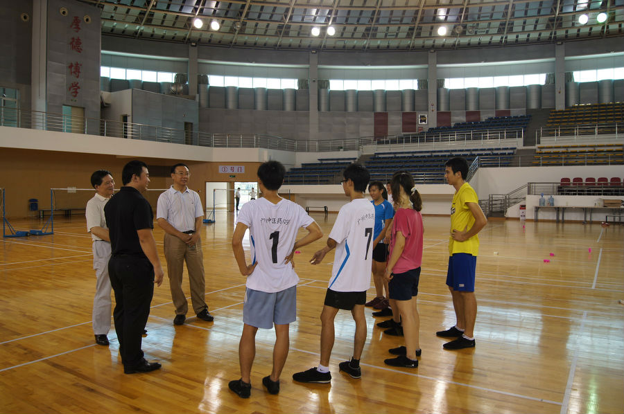 体育馆内,处处都是紧张备战的场面。徐志伟、林培政走上前和运动员教练员们亲切交谈,仔细询问大家的备战情况。两位校领导表示,大运会比赛已经临近,希望大家放下包袱,在比赛中把平时最好的成绩正常发挥出来,尽力完成赛前确定的目标,不但要在比赛成绩上争取走在全省前列,在精神文明建设上更要走在全省前列,展现广中医人的精神风貌。他们希望大家在备战的最后阶段科学训练,保重身体,确保以最好的状态为学校争光。