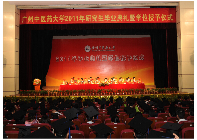 6月28日上午,我校2011年学位授予仪式暨研究生毕业典礼在学校大会堂隆重举行。学校领导、学校学位评定委员会委员及各二级单位负责人出席了学位授予仪式。240位博士学位获得者、1212位硕士学位获得者被授予了学位并接收了证书。 踏着嘹亮的迎宾曲,学位评定委员会主席、校长徐志伟带领学位评定委员会委员、学校领导步入学位授予仪式现场,研究生全体起立,掌声响起,迎接他们最激动、最难忘的时刻。徐志伟校长宣读了Beat365中文官方网站2011年学位授予文件,并为本年度1452名毕业的博士、硕士授予了学位。党委黄斌书记发表了热烈洋溢的讲话,祝愿全体研究生永远保持母校所赋予的优秀品质,志存高远,自强不息,迎接挑战,追求卓越,并期望同学们树立远大的理想,培养健全的人格,心存感恩,奉献社会,让青春、梦想从这里再次启航,在更广阔的人生舞台上书写青春、挥洒梦想! 博士生代表表示不辜负母校期望,在未来的工作和学习中,用火红的青春谱写绚丽人生,为母校增光;导师代表符文彬教授发言,祝福并寄语研究生在今后的工作岗位上要勤奋学习,扎实工作,顽强奋斗,把火红的青春奉献给中医药事业! 鲜花、掌声、笑容、泪水交织在一起,共同谱写出一曲激情澎湃、感人至深的毕业歌。学位授予仪式结束了,学位帽被高高抛起,组成一道亮丽的风景!流苏飞扬送祝福,硕果累累留纪念。学位授予仪式在雄浑的学校校歌声、毕业歌声中拉下了帷幕。