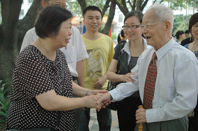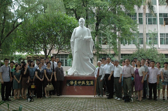 6月13日上午,三元里校区医圣张仲景雕像落成典礼举行。国医大师邓铁涛教授、校长徐志伟、台湾张仲景文教基金会张吴兰英、张书陆先生、张宏运博士出席了落成仪式。 校长徐志伟在致辞中,向文教基金会创会董事长张步桃教授及家人致谢,感谢他们在学校捐建医圣张仲景雕像。雕像历时一载,终于圆满落成,基座正面是邓老亲笔题写的"医圣张仲景像",雕像及基座浑然一体,凝聚了海峡两岸的医学家对医圣张仲景的敬仰和对我校师生的期望,成为学校一道亮丽的风景,为校园增添了浓郁的人文气息。 台湾张仲景文教基金会执行长张宏运博士发言说,弘扬仲景医学是其父张步桃教授毕生的心愿和事业,张仲景雕像在岭南中医药的最高殿堂巍然矗立,步桃教授非常欣慰。步桃教授还在学校设立了奖学金,让家境贫寒的学子将更多的精力投入到学习中,投入到中医药事业的发展中。 国医大师邓铁涛、校长徐志伟及台湾嘉宾共同为雕像揭幕,高大的医圣张仲景汉白玉雕像呈现在一众面前,雕像掩映在翠绿丛中,斑驳的光影洒在雕像的裙裾上,医圣慈祥的目光安详地注视着书香的校园,大家情不自禁鼓掌喝彩。参加仪式的还有党委宣传部部长简福爱、校长办公室主任林辉、研究生处处长潘华峰、外事处副处长张壮涛及师生代表。