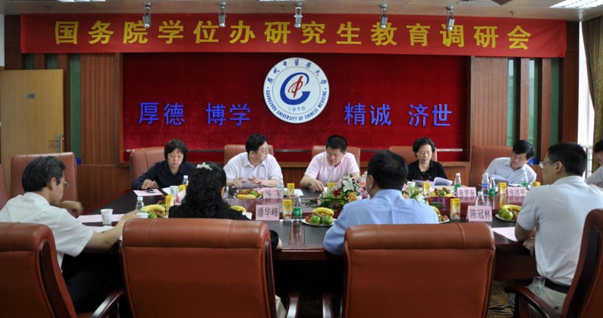 徐校长对国务院和省学位办长期以来给予我校研究生教育工作的关注和支持表示了衷心的感谢!在全面介绍学校总体情况和近年来取得的主要成绩后,向调研组重点介绍了我校新增学位授权点建设、专业学位教育工作、研究生培养机制改革、中医药院校筹建研究生院等工作。