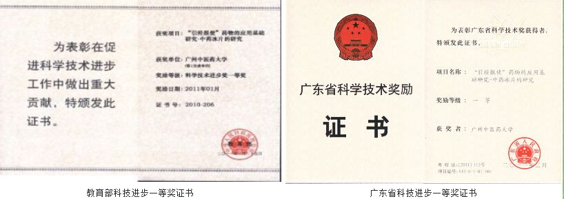 继获得广东省科技进步一等奖后,近日,从国家教育部传来喜讯,副校长王宁生教授主持的"引经报使"药物的应用基础研究-中药冰片的研究获得国家教育部科技进步一等奖。