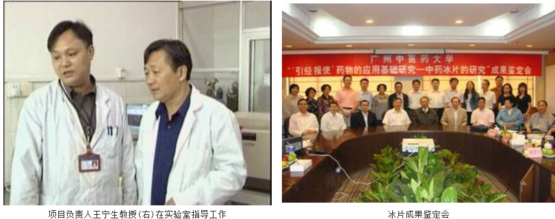 80年代末项目负责人王宁生教授率先提出冰片作为"使药"的实质与促进血脑屏障可逆性开放有关的假说,随后带领研究团队历经近二十年研究,获得国家、省部级12项课题的立项资助。项目围绕"引经报使"经典中医药理论,运用多学科交叉研究的方法,对中药冰片展开了全面、系统、深入的研究,首次阐明并证实了冰片"走窜、上行、开窍"的中药药性实质,丰富了冰片的现代药理、毒理学内容;此外,以冰片为先导化合物,设计、合成了13个新化合物,进行了中药创新药物的研究。