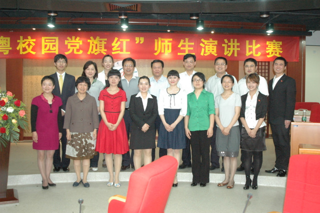 黄斌书记在发言中说,"南粤校园党旗红"系列活动的举办是为了纪念中国共产党建党90周年,重温党的光辉历程、歌颂党的伟大成就。演讲比赛是系列活动中历时最久、覆盖面最广、参与积极性最高的一次比赛。黄书记赞赏师生积极参与比赛的热情,鼓励师生通过多种形式"创先争优,争当先锋",为学校的建设,为幸福校园的构建贡献力量,以实际行动,为党的90岁生日献礼。