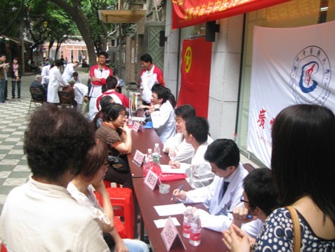 另讯,4月10日上午,在北京街综合服务中心门前开展了我校第一期"幸福广州,健康同行"活动,进行了八段锦表演、培训,饮食讲座,健康咨询与中医传统疗法义诊等活动,街道群众反响强烈,参与同学获益良多!