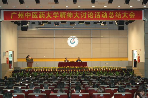 黄斌书记在会上从三个方面作了总结讲话:一是大学精神对建设高水平特色大学的重要意义;二是大学精神大讨论活动的有关情况及其成果;三是大力弘扬广中医精神,促进各项事业又好又快发展。