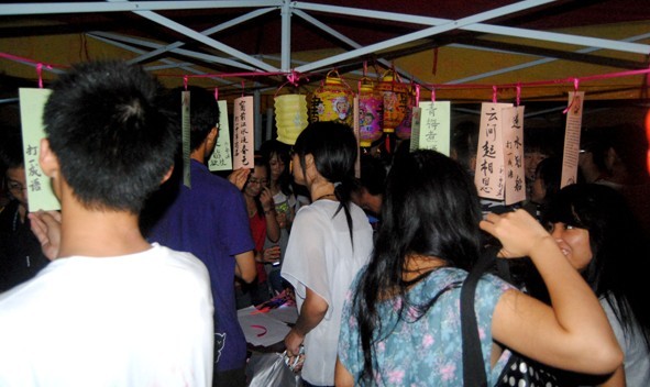 一饭至A、B、C三栋宿舍楼旁空地,到处装饰着红灯笼和中国结,形成了浓郁的中秋节气氛。游园分"月夕雅韵"、"亚运激情"、"岭南印象"、"大学尚道"、"社彩斑斓"五个不同主题,由32个学生社团设立各具特色的游戏摊位,如天文社的"月夕•思远"、心理发展促进会的"大学•心道"、自然环保协会的"社彩•陆地海洋天空"等等。虽然当天阴雨,但还是挡不住同学们的热情,许多同学冒雨前来参加这次的游园活动,游园区人山人海,各个游戏档口都挤满了,上千份精美的礼品不到九点半就已派发告罄。