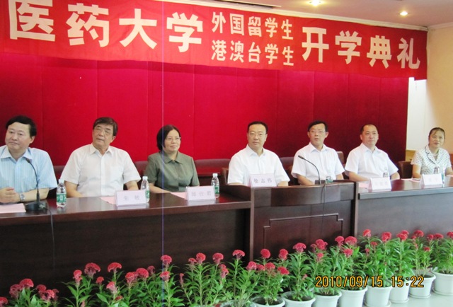 9月15日下午, 2010级港澳台、外国留学生开学典礼在我校三元里校区多功能会议室隆重举行。徐志伟校长、许仁贵副校长、研究生处潘华峰处长、学生处侯宁副处长、第一临床医学院朱敏副院长、针灸推拿学院李万瑶副院长及国际学院的领导参加了开学典礼。