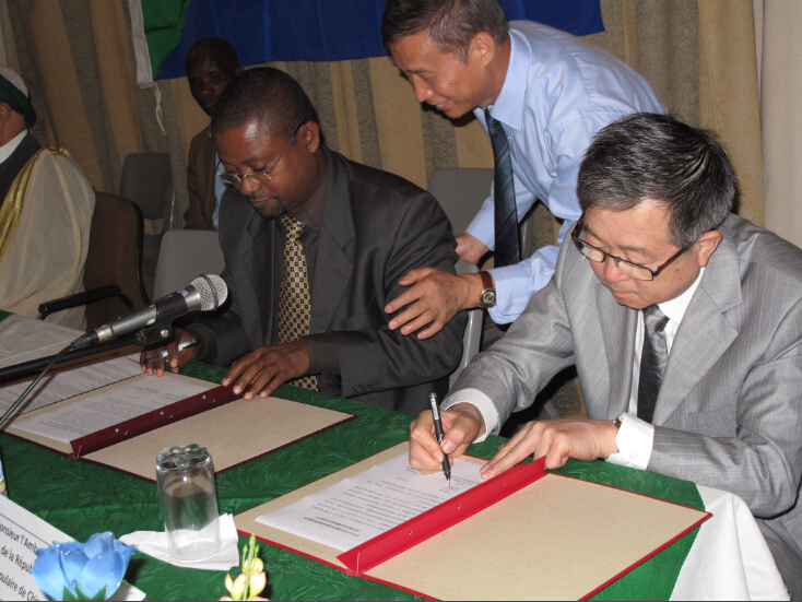 根据商务部下达的援建中国-科摩罗疟疾防治中心的任务,2010年5月18日我校青蒿中心派出由邓长生、周崇峻和欧风珍等同志组成的疟疾防治专家组赴非洲岛国科摩罗,开展了为期60天的疟疾防治中心援建及培训工作。完成了中国-科摩罗疟疾防治中心的援建,并向科摩罗卫生部提供了我校与广东新南方青蒿公司研制的新一代青蒿素抗疟新药-Artequick和相关医疗设备。 近日,中国驻科摩罗大使王乐友于出席了中国政府向科摩罗政府赠送抗疟药品Artequick和医疗器械交接仪式,并签署交接证书。科联盟总统桑比、国民议会副议长加伊以及科国防、司法、公职、卫生和通讯部长等主要内阁成员,以及WHO、UNICEF驻科摩罗代表共同出席。 桑比总统在讲话中赞赏中方为科医疗卫生事业作出的重要贡献,感谢中国政府提供的抗疟药品和医疗器械,表示这批援助物资再次见证了中国政府和人民对科政府和人民的兄弟情谊。科摩罗是疟疾高发地区,消灭疟疾是科政府工作的重中之重。他积极评价我校青蒿中心疟疾研究团队在莫岛快速灭疟项目取得的巨大成功,称赞其为饱受疟疾之苦的科人民带来曙光,也给科国家发展带来希望。