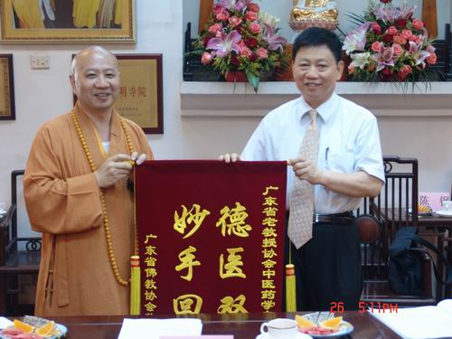 5月26日下午,由我校和广东省老教授协会中医药学专家委员会倡议发起的向广东佛教协会慈善中医诊所捐赠药品仪式在广州光孝寺隆重举行。