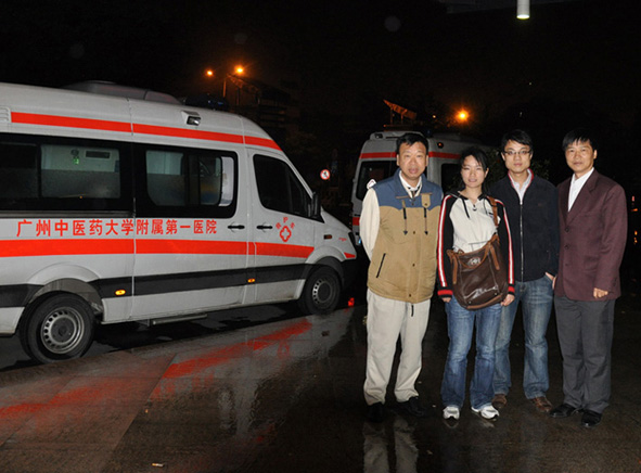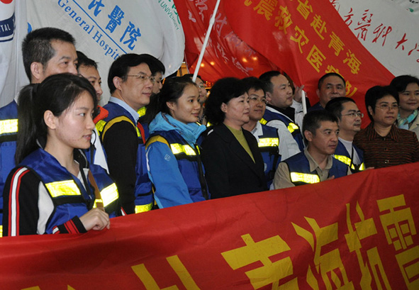 我校第一附属医院、第二附属医院得悉此消息后,高度重视,立即按照省卫生厅部署迅速行动,挑选医院有经验的医务人员、准备相关物资,紧急成立赴青海抗震救灾应急医疗队,24小时待命。昨晚接卫生厅紧急通知,两所医院都派出了第一批医务人员加入广东医疗专家组,于今晨5点出发,飞赴抗震救灾一线。第一附属医院樊粤光院长、第二附属医院吕玉波院长等医院领导亲赴机场送行。雷于蓝副省长、卫生厅黄小玲书记等领导也到机场送由27名医护人员组成的广东省赴青海抗震救灾医疗队。