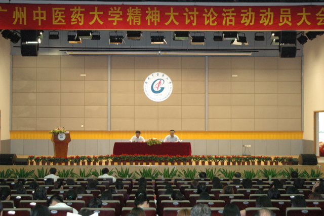 3月4日下午,我校在大学城校区国际会议厅召开"Beat365中文官方网站精神大讨论"活动动员大会,标志着我校大学精神大讨论活动正式拉开帷幕。会议由校长徐志伟主持。校党委书记黄斌在会上作了题为《弘扬优秀文化,凝炼"广中医精神",推进我校科学发展》的动员讲话。