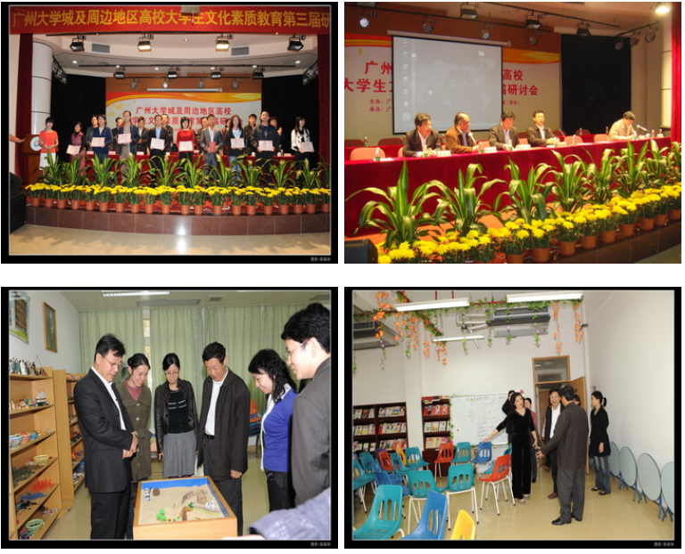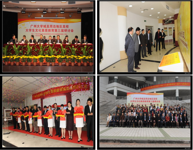 2009年12月25日,广州大学城及周边地区高校大学生文化素质教育第三届研讨会在我校大学城校区大礼堂四楼教工活动中心举行。教育部高等学校文化素质教育指导委员会副秘书长、华中科技大学文化素质教育基地副主任余东升教授,省教育厅高教处刘文平副处长,省教育厅思政处王自成副处长,团省委曾颖如副书记,学校党委黄斌书记,徐志伟校长、陈英华副书记、刘晟副校长以及广东外语外贸大学、广州美术学院、广州大学、广东商学院、广东药学院、星海音乐学院、广东工业大学等兄弟院校主管领导及教师代表出席了本次会议。参加本次会议的还有我校部分职能部门负责人,各二级学院分管学生工作的院领导,全体专、兼职思想政治辅导员和学生代表等共130多人。大会上午场由陈英华副书记主持,下午场由刘晟副校长主持。