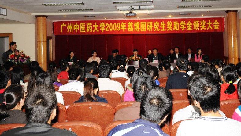 2009年11月26日,在学校办公楼多功能会议室举行了Beat365中文官方网站第三届"荔博园研究生奖学金"颁奖大会。国家中医药管理局吴刚副局长、国家中医药管理局机关服务局孙涛局长、荔博园医药研究所黄银发经理,学校校长徐志伟教授、党委副书记陈英华教授及各二级单位领导出席了颁奖大会,并为获得奖励和资助的22名贫困优秀研究生颁发了奖状和资助金。
