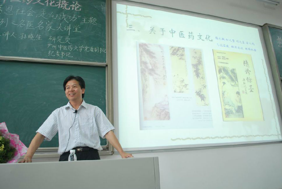 在讲座的过程中,孙副书记还以幽默、睿智的语言,结合自身丰富的人生阅历,旁征博引地从书画、日常生活、药膳文化、凉茶文化、中西医文化对比等方面为我们详细地解读了五千年来中医药文化的起源,发展和现状,并传授了"大医精诚"的中医核心价值观。最后孙副书记勉励我院青年学生要学好中医,为祖国的中医药事业作出贡献。