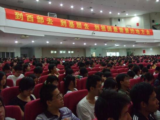 本次报告会是为进一步落实共青团中央、教育部、财政部、人事部《关于实施大学生志愿服务西部计划的通知》精神,动员我校更多应届毕业生参加西部计划,在我校唱响"到西部去、到基层去、到祖国最需要的地方去"主旋律而举办的。(团委)
