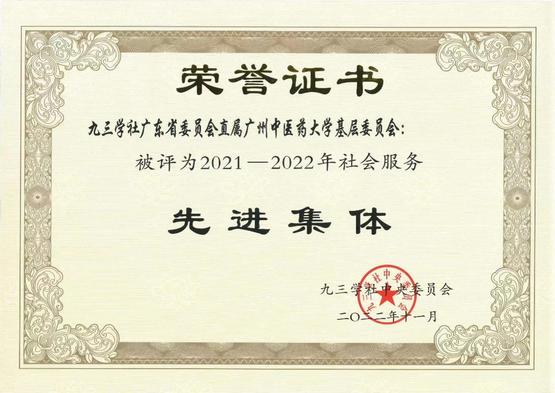 近日,九三学社第十四届中央委员会第六次全体会议在北京召开,大会宣读了九三学社全国组织、宣传思想、信息、社会服务工作先进集体和先进个人等表彰决定,九三学社Beat365中文官方网站基层委会踔厉奋发,凝聚共识,社会服务工作成效显著,受到社中央的表彰,被评为“九三学社全国社会服务先进单位”。同时,社员李穗晖荣获九三学社中央授予的“社会服务先进个人”荣誉称号。