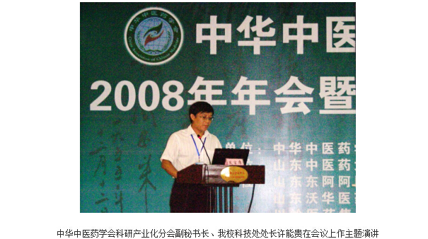 会议期间,科研产业化分会副秘书长、我校科技处许能贵处长作了题为《加快中医药国际合作,努力推进中医药科技产业国际化进程》的主题演讲。北京中医药大学、南京中医药大学、上海中医药大学、安徽中医学院、山东东阿阿胶股份有限公司、山东沃华医药科技股份有限公司、以岭医药集团、山东中医药大学等单位代表,围绕中医药科研创新、中医药产业的国际化和现代化、科技成果转化等问题进行了深入的理论探讨和广泛经验交流。