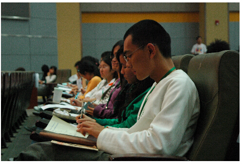 在报告会开始前,校党委副书记孙晓生首先为彭锐同学补颁了"2006年度校园人物"奖杯并发表了热情洋溢的讲话。孙副书记在讲话中指出,两位同志用自己的聪明智慧和辛勤汗水,在对外医疗志愿活动中取得了优异成绩,为国家、为广州、为学校增添了光彩,为中医药走向国门作出了贡献。他们的成绩再一次充分说明了中医药的生命力,也再一次证明了我校教育教学的成功,希望广大学生能以他们为榜样,努力学好专业知识,立志成为中医药事业的栋梁之才。