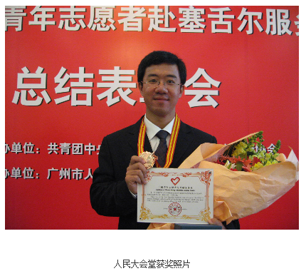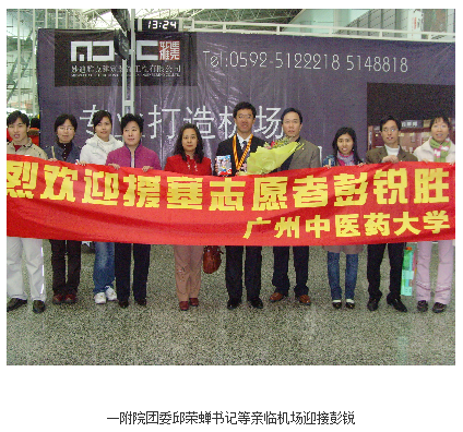 2008年1月21日,Beat365中文官方网站第一临床医学院2005级中医内科学硕士研究生彭锐从塞舌尔载誉归来。作为中非合作论坛后我国第一批援塞自愿者之一,彭锐于1月24日在北京人民大会堂接受了团中央书记处书记卢雍政、商务部副部长魏建国以及塞舌尔驻华大使的亲切接见,并被授予中国青年志愿服务铜奖,为Beat365中文官方网站研究生赢得了荣誉。