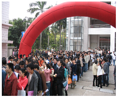 我校对此次招聘会给予了高度的重视,校领导亲自指挥,学校各职能部门分工协作,各院学生工作人员及300多名学生志愿者共约600名工作人员全部上岗,"战斗"在会场的第一线,努力给用人单位和毕业生提供周到的服务、营造舒适的环境,体现了"以人为本"的工作理念。会后,用人单位对我校周到的服务表示感谢,广大毕业生对本次招聘会也表示非常满意。