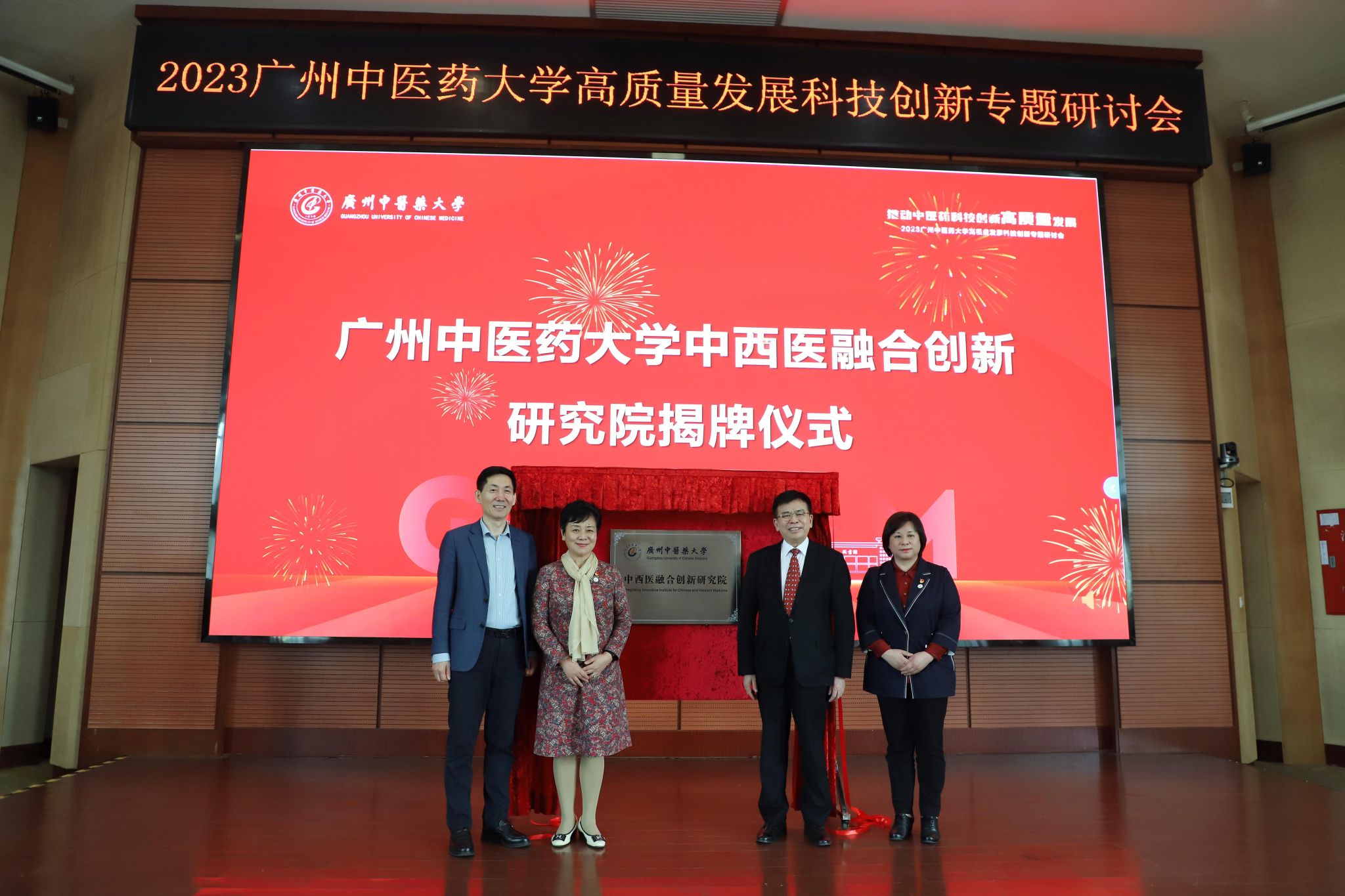 会上,学校党委书记张建华、校长王伟、中国工程院院士刘良和第二附属医院(广东省中医院)党委书记史俏蓉为“Beat365中文官方网站中西医融合创新研究院”揭牌。