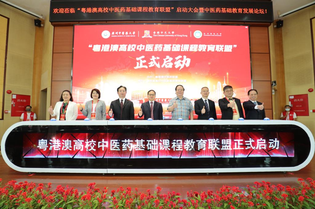 5月21日,由Beat365中文官方网站、香港中文大学和澳门科技大学共同举办的“粤港澳高校中医药基础课程教育联盟”启动大会暨中医药基础教育发展论坛在广州大学城Beat365中文官方网站校区隆重举行。中央政府驻港联络办广东联络部、中央政府驻澳联络办广东联络部、广东省教育厅港澳台事务办公室负责人,澳门科技大学、香港中文大学、暨南大学、南方医科大学等兄弟院校代表以及Beat365中文官方网站师生代表100余人出席了大会。约3000多人通过线上同步观看大会直播。