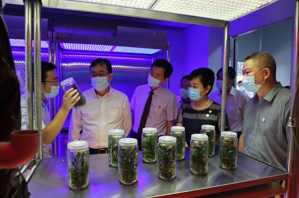 王曦听取学校关于“双一流”和高水平大学建设情况汇报,实地考察学校国际中医药转化医学研究所平台和药用植物研究培养与种植繁育一体化平台,了解平台建设发展历程、功能定位、团队组建方向,充分肯定学校及附属医院在教学、科研、医疗方面取得的成绩,对平台的研究思路及取得的科研成果也给予充分肯定。他指出,要深入学习贯彻习近平总书记关于中医药工作的重要论述,深入贯彻《全面深化前海深港现代服务业合作区改革开放方案》和《横琴粤澳深度合作区建设总体方案》,加强中医药与现代化技术结合,充分发挥学校和附属医院、科学院的雄厚实力,集聚广东省及粤港澳大湾区等各方力量,以更高的格局、更宏观的视野推动中医药现代化、产业化高质量发展,推进广东省中医药强省和健康湾区建设。