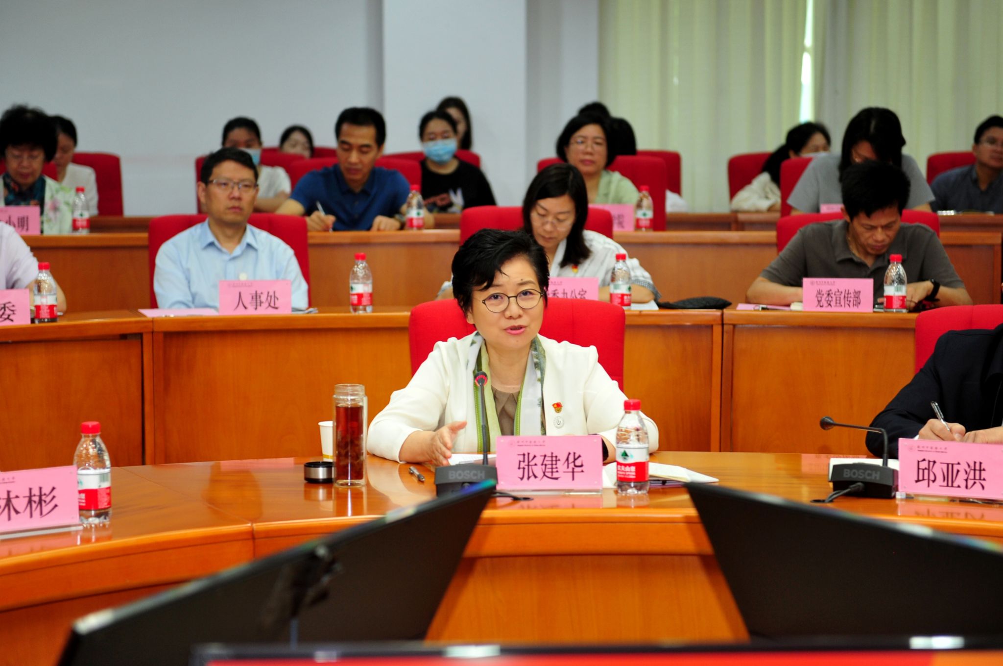 张建华代表学校党委和全体教职工对各位专家的辛勤奉献、精心指导和热忱帮助表示衷心感谢。她代表学校表态:一是“学”,要认真组织学习护理学专业认证标准的真实内涵,还要组织向国内外一流标杆护理学专业学习;二是“查”,要查找、查摆专业建设中的不足,特别是人才培养方案、课程建设、条件建设等方面的不足;三是“改”,要加强顶层设计,坚持问题导向,明确实施路径,细化责任,制定出切实可行的整改方案,标本兼治地做好整改工作。学校将以此次专业认证为契机,以最坚决的态度、最扎实的行动、最得力的举措把专家组的反馈意见和要求落实到人才培养的全过程,全面提高人才培养质量。