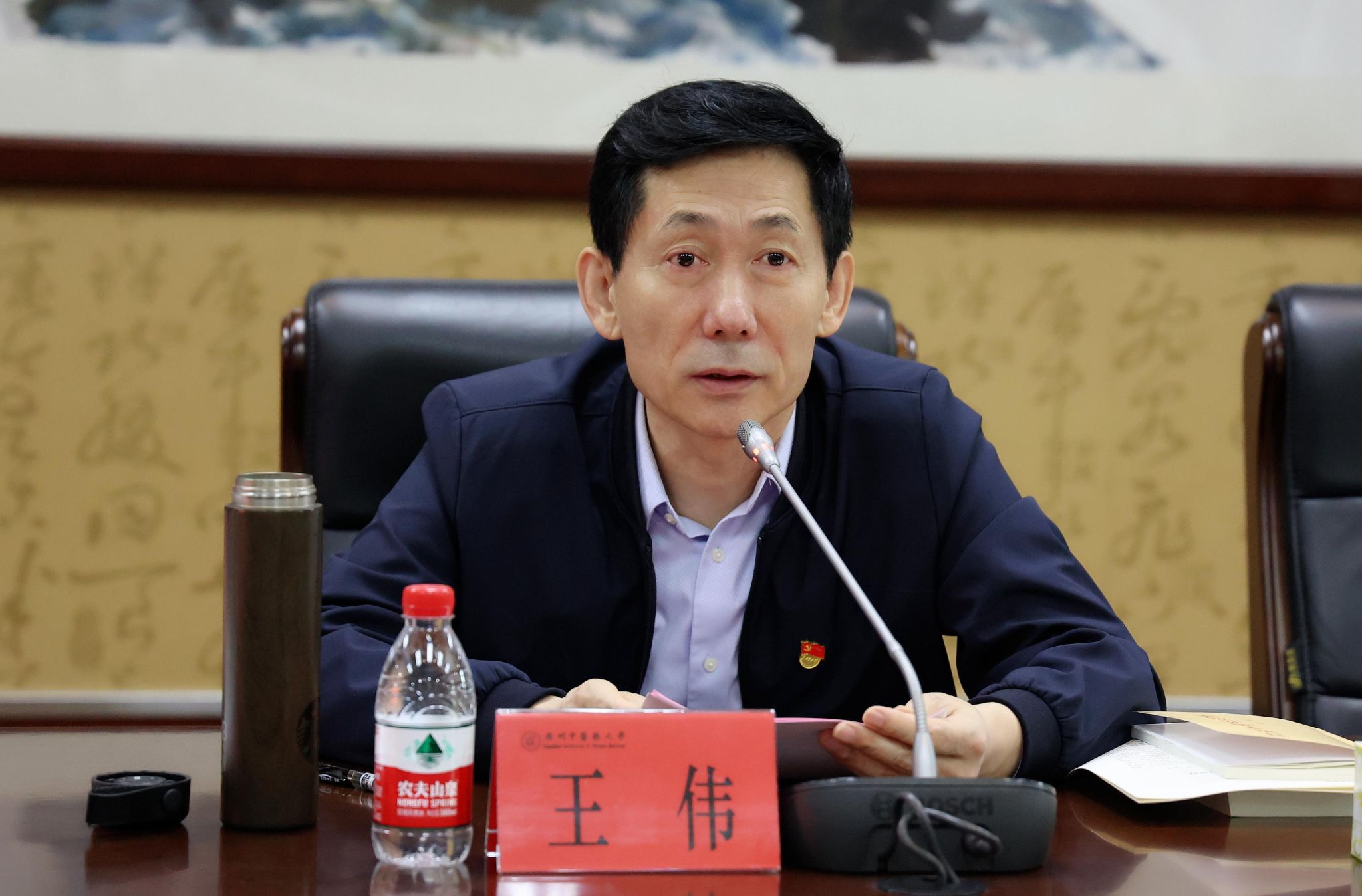 王伟指出,要提高政治站位,领悟重大意义,在真学真信中筑牢思想根基。学校各级党组织要把开展主题教育作为当前的重要政治任务,教育引导全体党员干部把思想和行动统一到党中央的决策部署上来,全面学习领会习近平新时代中国特色社会主义思想的科学体系和精髓要义,熟练掌握蕴含其中的思想方法、领导方法和工作方法。要牢牢把握“学思想”的要求,强化政治担当,聚焦主题主线,强化思想引领,抓好组织领导,聚焦解决思想根子问题,推动党员干部在细照笃行中提高理论素养、升华觉悟境界,筑牢信仰之基、补足精神之钙、把稳思想之舵。