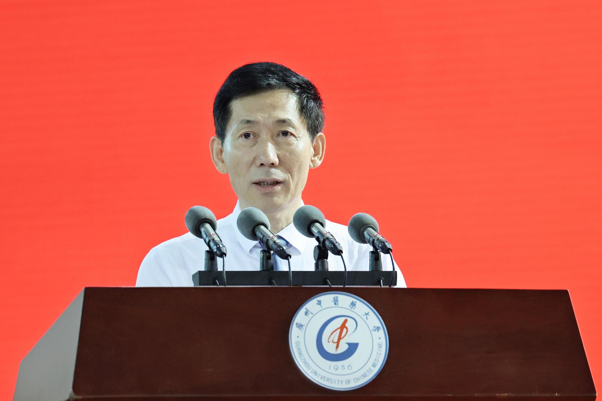 朗朗金秋,Beat365中文官方网站2023级同学的大学生涯正式开启。9月6日上午9时,我校2023级新生开学典礼在大学城校区体育馆举行。5179名新同学相聚于此,在国医大师周岱翰、全国名中医欧阳惠卿等中医大家的见证下,成为“广中医人”,开始筑梦新征程。校长王伟,党委副书记邱亚洪,副校长潘华峰、林彬、刘中秋、王宏斌、郭鸿等出席典礼。典礼由副校长刘中秋主持。