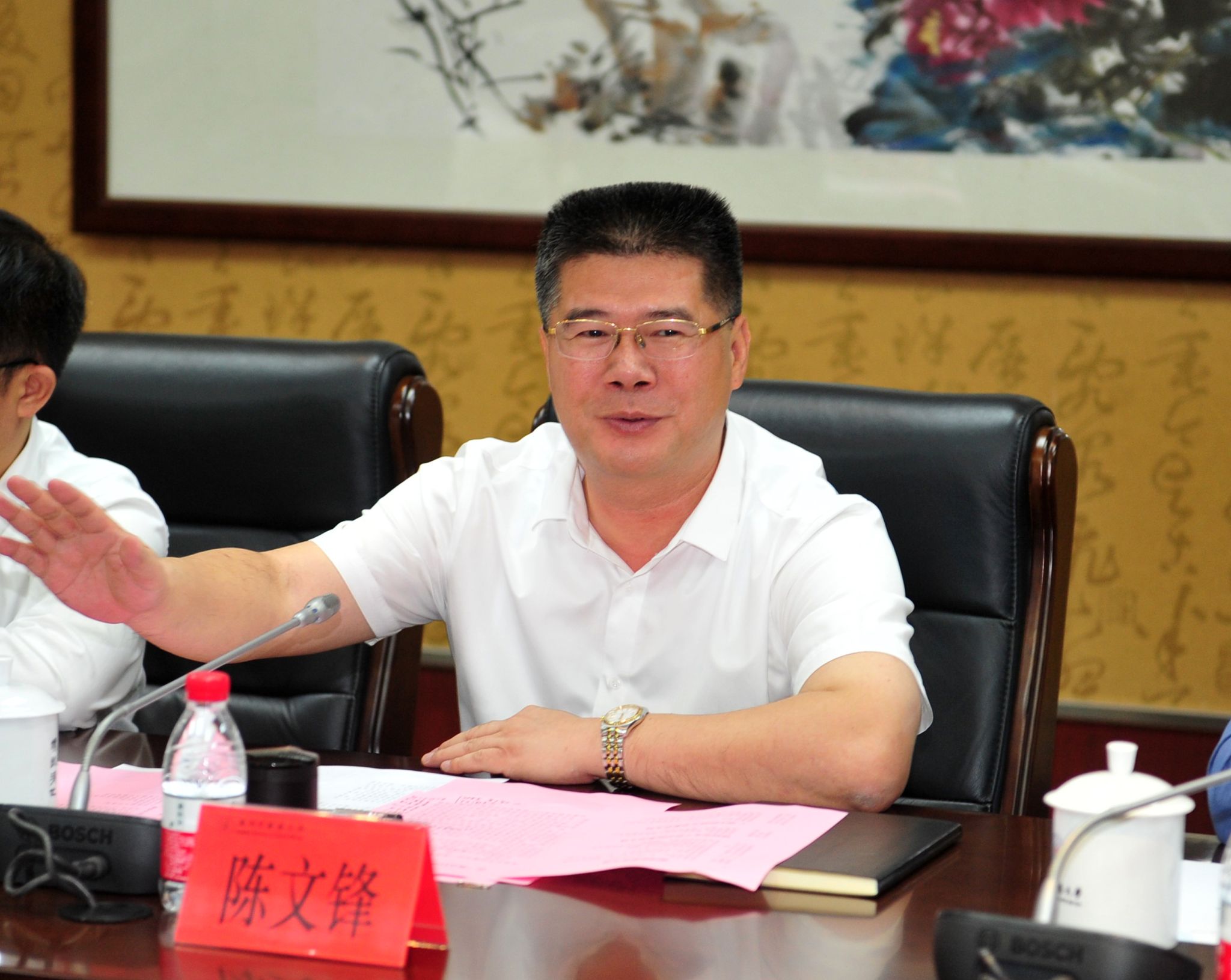 陈文锋对仲恺农业工程学院、佛冈县领导同志来我校参加“双百行动”县校合作联席会议表示热烈欢迎,强调实施“双百行动”是落实习近平总书记视察广东重要讲话、重要指示批示精神的重要举措,是高校推动落实省委“1310”战略任务的重要组成,也是省委省政府促进城乡区域协调发展的重要战略部署,是落实广东高质量发展“头号工程”的实际行动,校县三方一定坚决贯彻落实省委省政府决策部署,结对共建推动高质量发展。