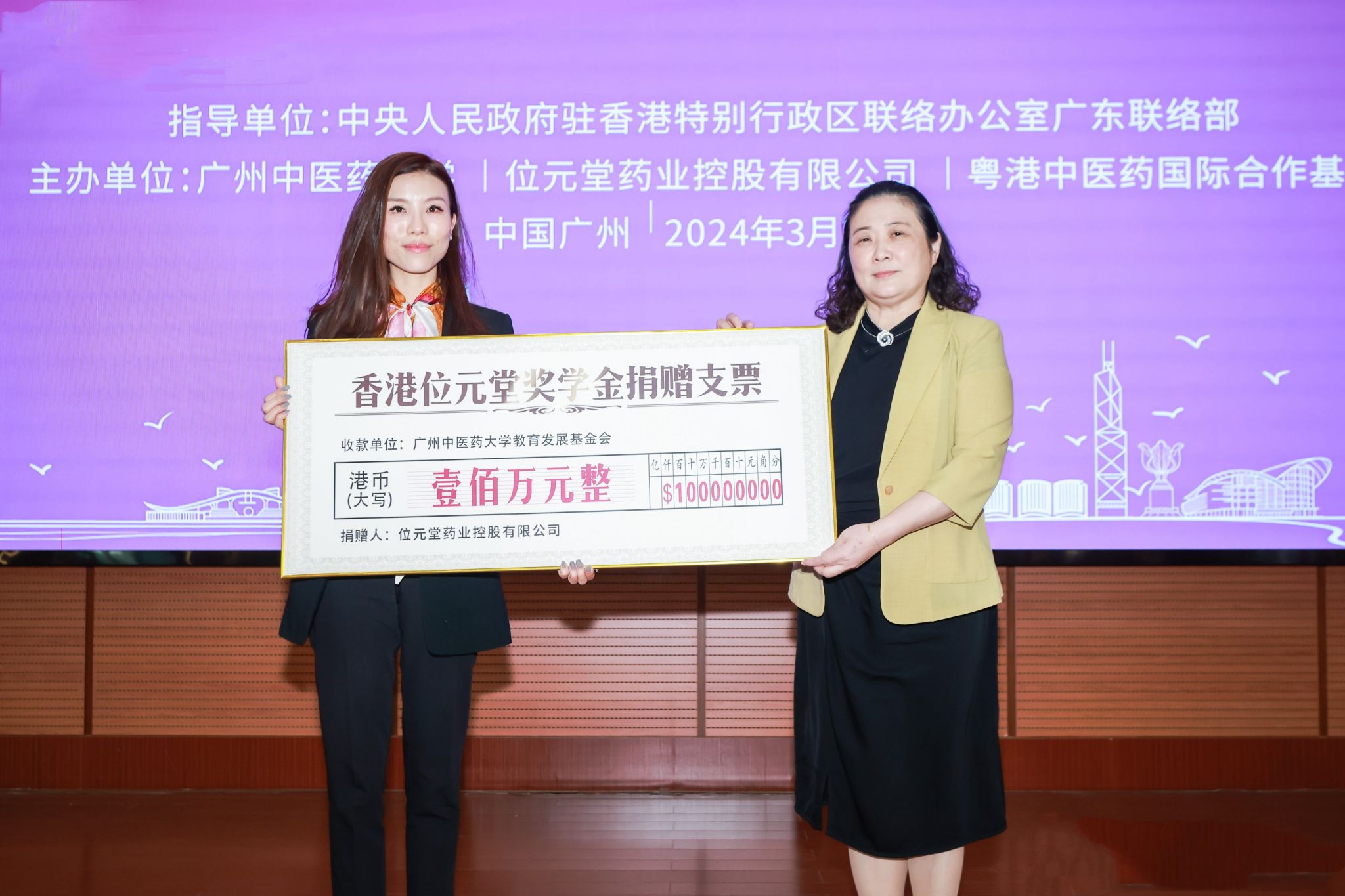 潘华峰副校长代表学校接受位元堂邓蕙敏执行董事100万港币的捐赠,用于资助培养爱国爱港学生,助力香港青年成长成才。陈文锋书记向邓清河副主任及邓蕙敏执行董事赠送广中医与位元堂的珍贵历史资料。