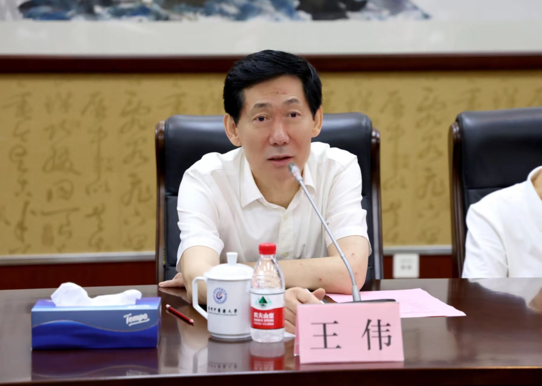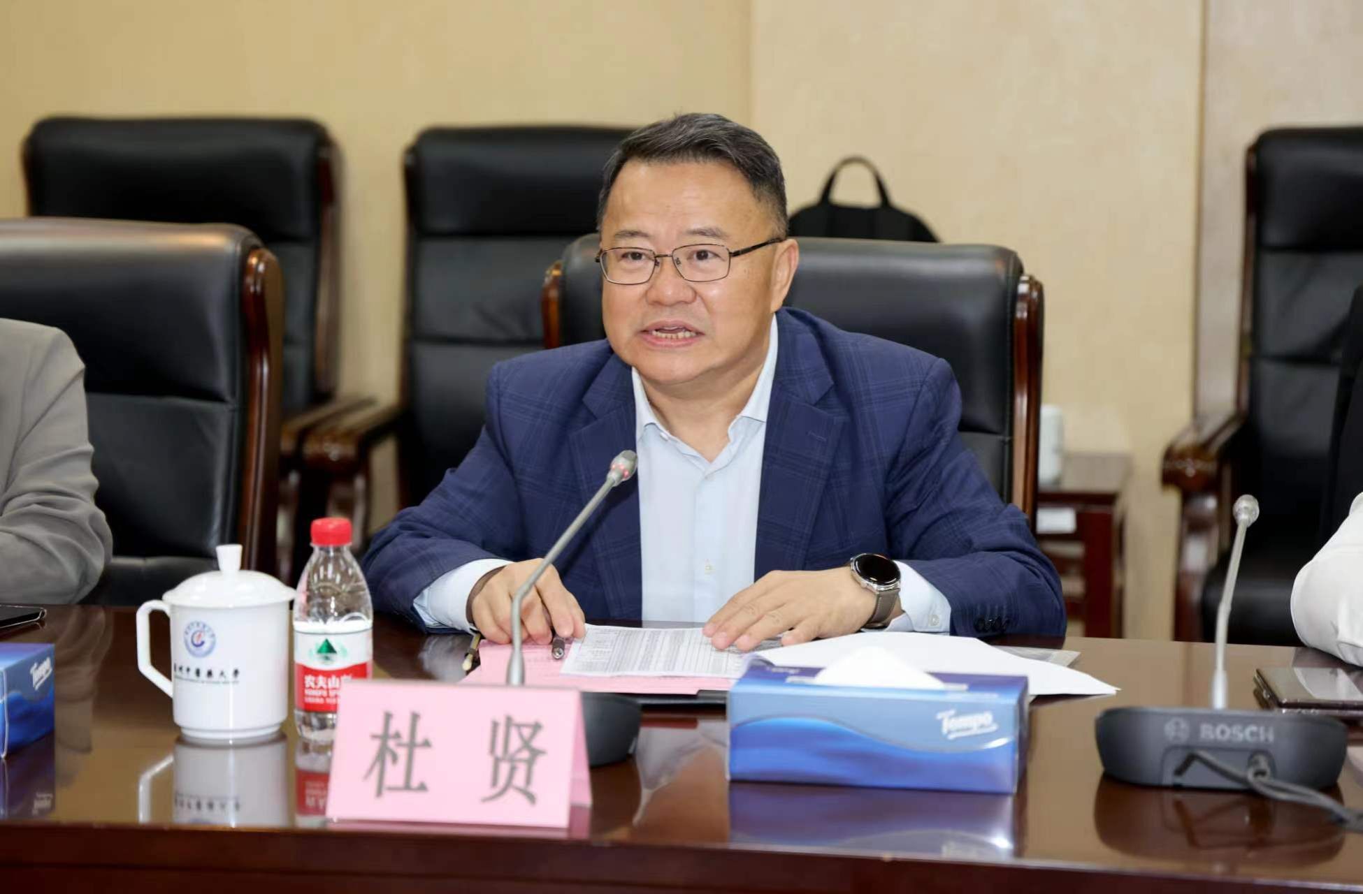 王伟对杜贤一行表示热烈欢迎,向与会嘉宾介绍了学校的发展历程和基本情况,尤其是近年来学校在优化学科专业布局、提高人才培养质量、打造高层次科研平台等方面取得的成绩,他希望通过此次调研交流,双方能够在顶层设计上进行战略合作,进一步强化学校的五大职能。
