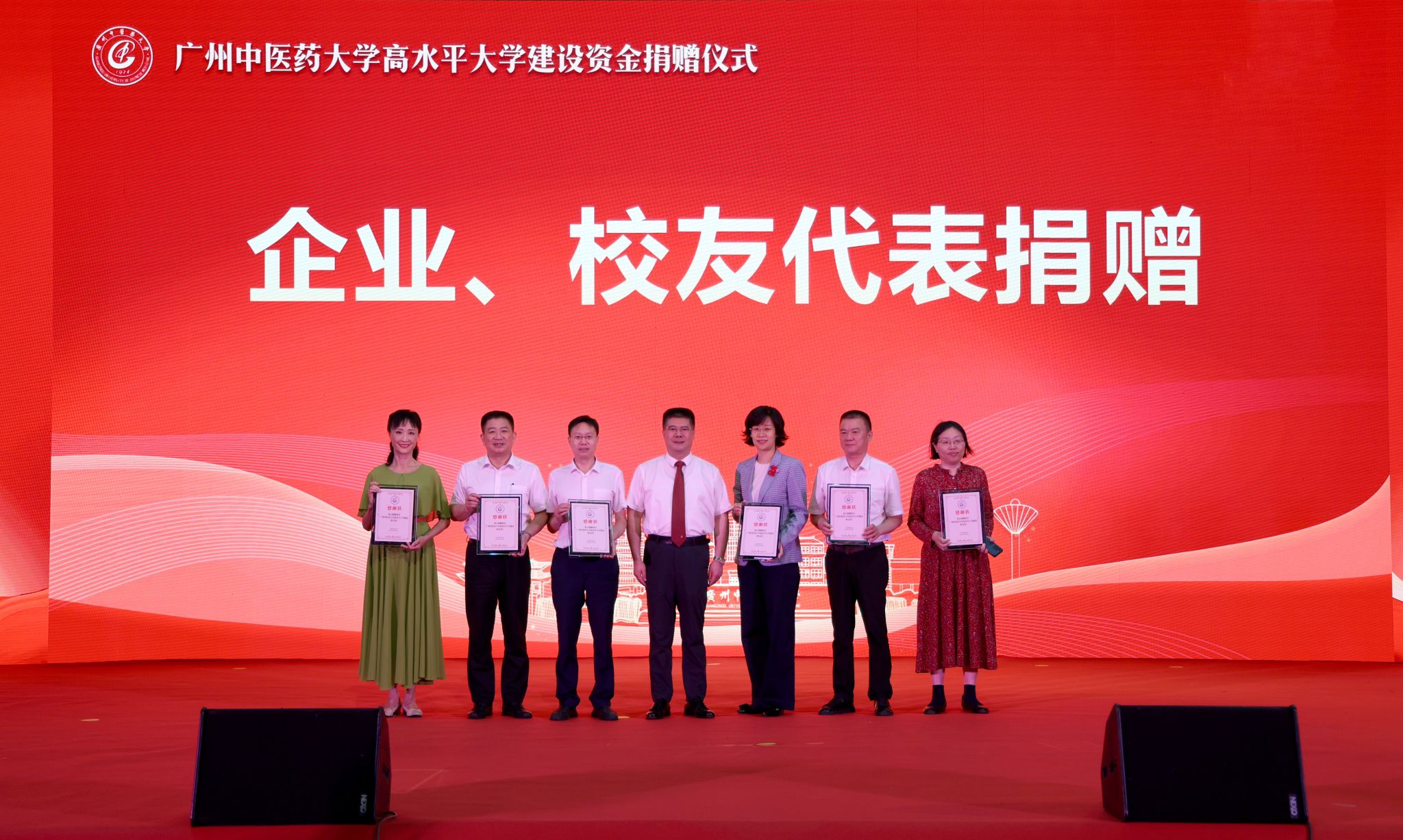 校友代表、固生堂集团联合创始人、首席战略与策略官李明芮,广东健翔医院管理集团院长龙翔宇,天草药业集团董事会主席郑开荣,1977级中药专业杰出校友、广东利玮医药有限公司董事长陈丹,2004级校友栾加芹,以及直属附属医院、校政合作医院、临床医学院、非直属附属医院等代表参加。学校党委书记陈文锋出席并致谢,副校长潘华峰主持仪式。